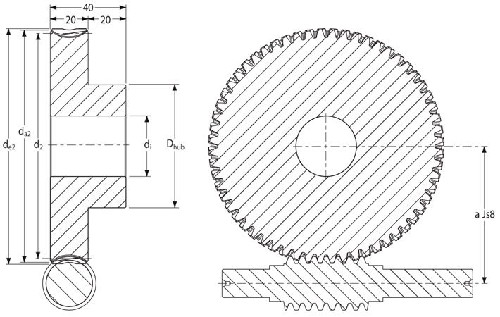 2.0 Module PEEK GF30® (Light Brown) 3 Start Precision Wormwheel 20° PA - Quality Grade 8e25 DIN 3974/3967
